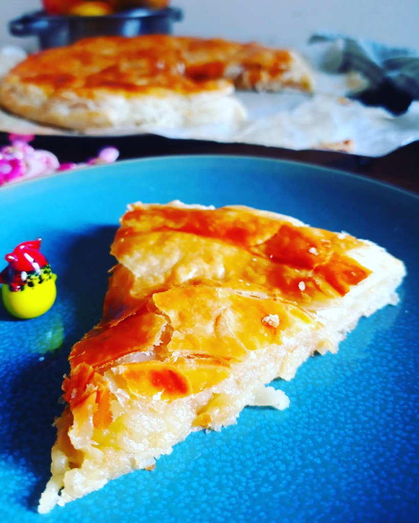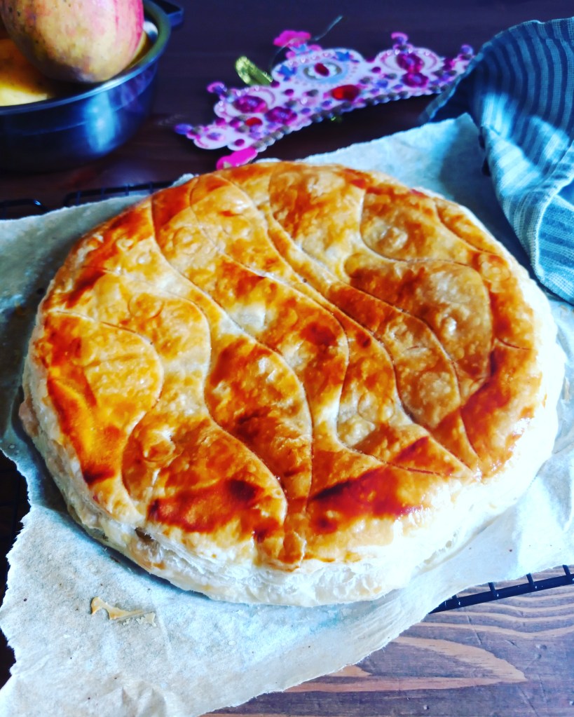 Pour débuter 2021, et Epiphanie oblige, je vous propose une galette des rois délicieusement garnie de pommes caramélisées au miel.