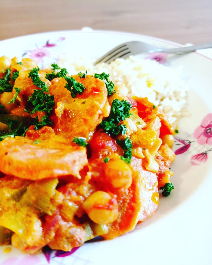 Avec ce temps glacial qui nous retombe dessus actuellement, rien de mieux qu’un plat hyper réchauffant et réconfortant comme ce curry de légumes au pois chiches.