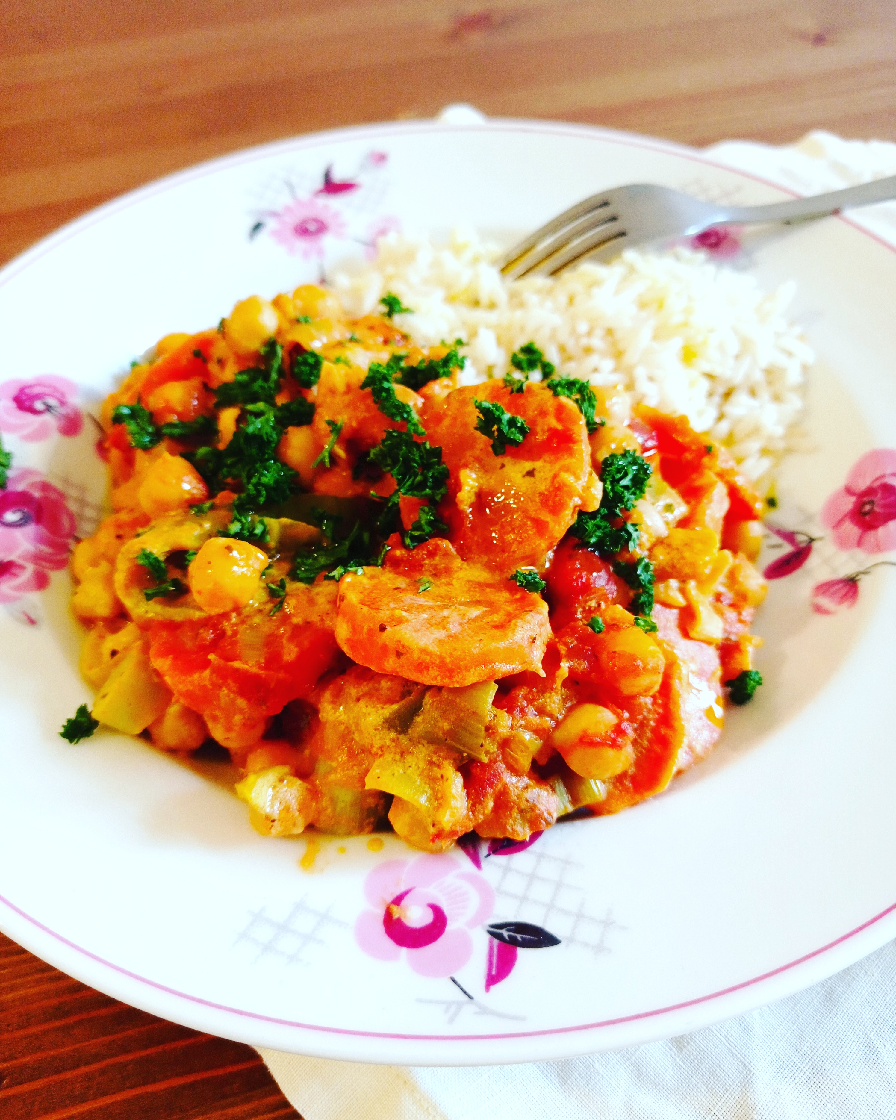 Avec ce temps glacial qui nous retombe dessus actuellement, rien de mieux qu’un plat hyper réchauffant et réconfortant comme ce curry de légumes au pois chiches.