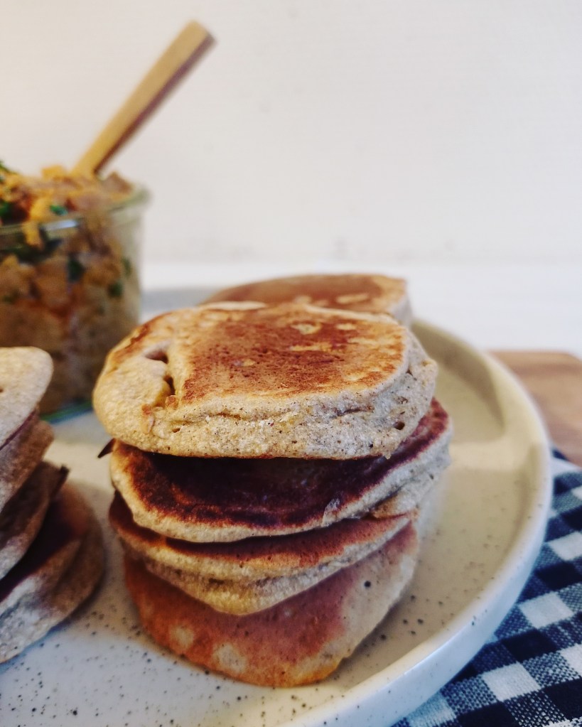 La recette des blinis est inspirée du livre La cuisine au sarrasin, la graine star de Maud Vatinel, avec quelques adaptations, notamment pour qu’elle soit sans lactose ni caséine.