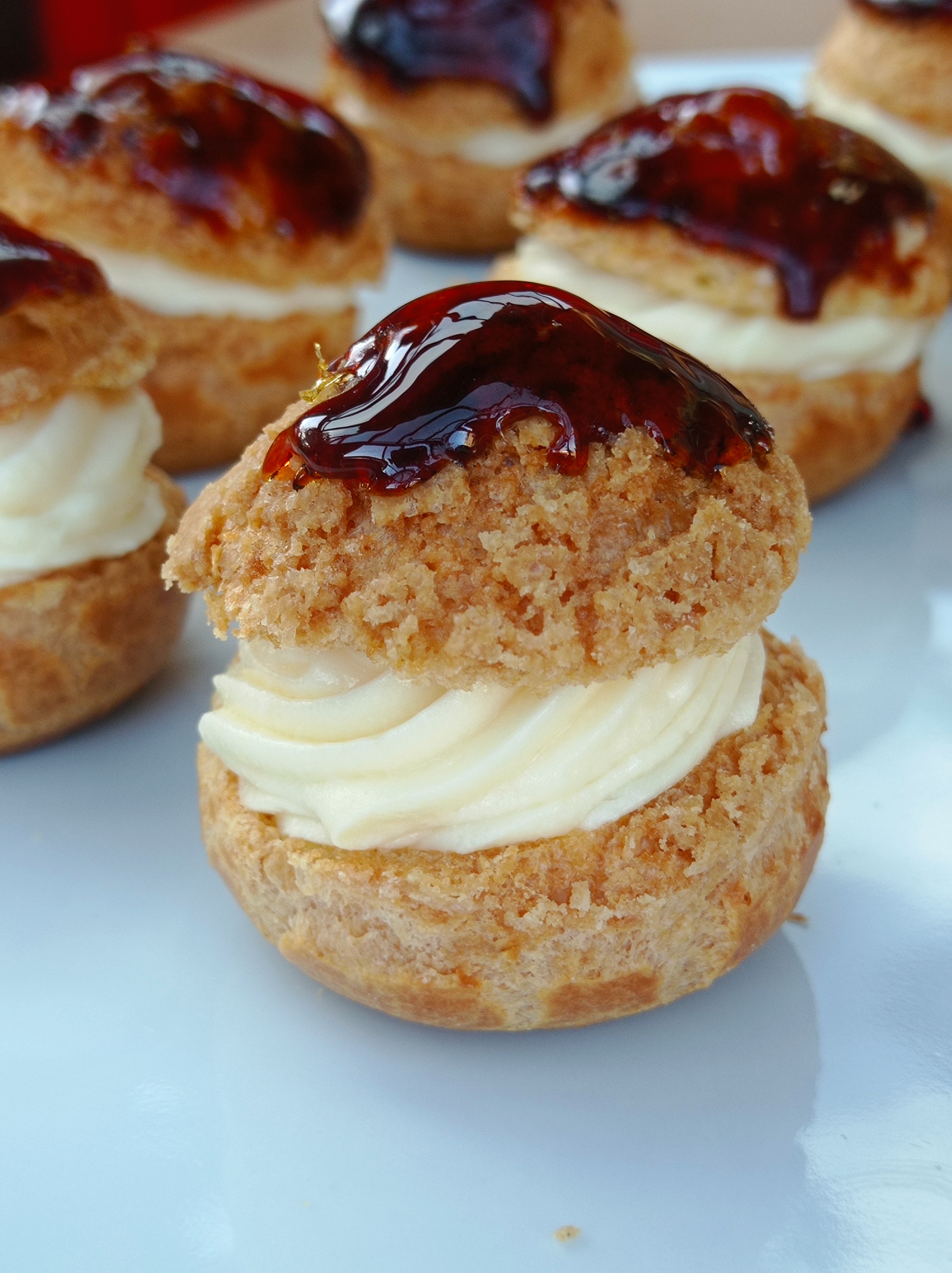 Je ne vais pas vous dévoiler ici tous les petits trucs et astuces enseignés par Chef Clément, ce n’est pas le but. Mais voici la pâte à choux telle que je l’ai réalisée suite à la formation. Avec un mélange moitié eau, moitié lait, qui permet une parfaite texture pour des choux à garnir, à la fois sèche et moelleuse.