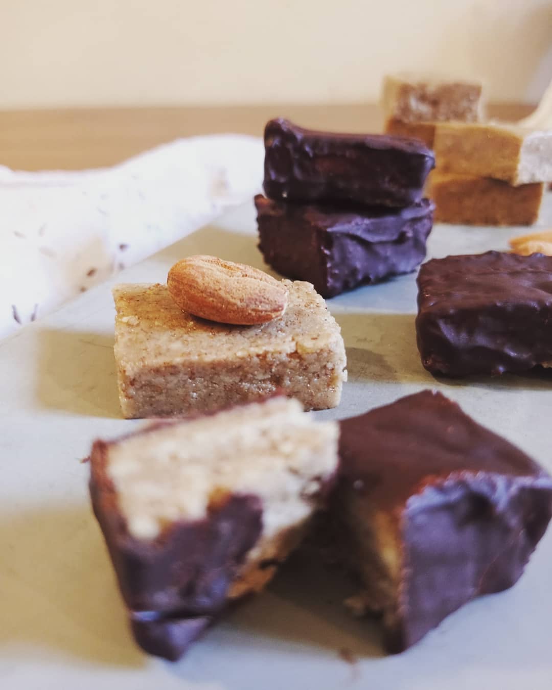 - Faites fondre le chocolat au bain-marie, plongez vos fudges dedans et laissez figer.