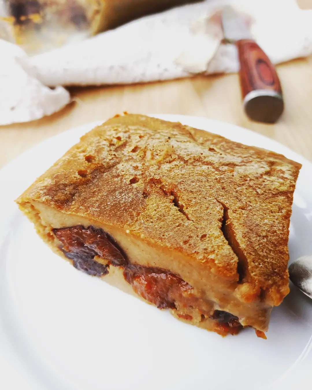Il y a bien longtemps que je n’avais pas mangé un far breton. Et qu’est-ce que c’est bon cette texture moelleuse et dense à la fois – un peu comme le clafoutis en fait – alliée à la subtile acidité des pruneaux 😋 La recette que je vous propose est une revisite sans gluten, sans produits laitiers et sans sucre raffiné de ce célèbre classique. Côté farine j’ai opté pour un mix farine de coco / farine de patate douce / fécule arrow-root et à l’occasion je testerais bien une version incluant de la farine de sarrasin, recette d’origine bretonne oblige ☺️