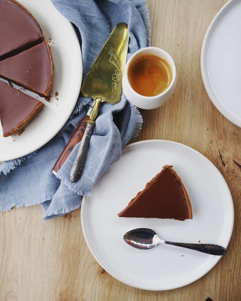 On se retrouve aujourd’hui avec une tarte des plus gourmandes, la tarte au chocolat ! Je vous avais déjà proposé une tarte choco-banane. Celle-ci est sensiblement pareil, mais sans la banane d’une part, et avec une pâte sucrée différente d’autre part. J’ai essayé cette fois une pâte vegan inspirée de celle de Marie du super blog Allergique Gourmand. Cette tarte est donc 100% végétale mais aussi sans gluten, pour convenir au plus grand nombre 👌