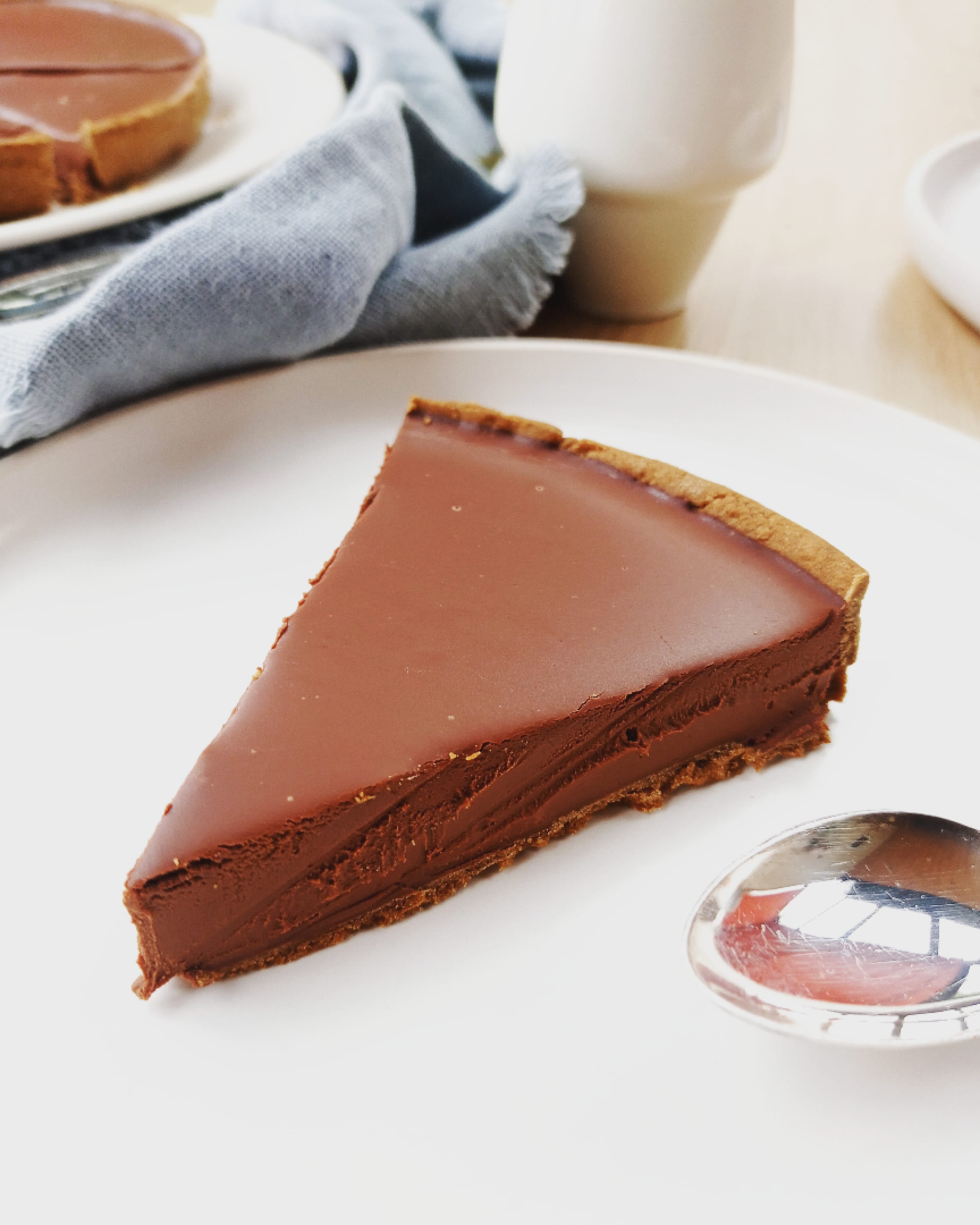 On se retrouve aujourd’hui avec une tarte des plus gourmandes, la tarte au chocolat ! Je vous avais déjà proposé une tarte choco-banane. Celle-ci est sensiblement pareil, mais sans la banane d’une part, et avec une pâte sucrée différente d’autre part. J’ai essayé cette fois une pâte vegan inspirée de celle de Marie du super blog Allergique Gourmand. Cette tarte est donc 100% végétale mais aussi sans gluten, pour convenir au plus grand nombre 👌