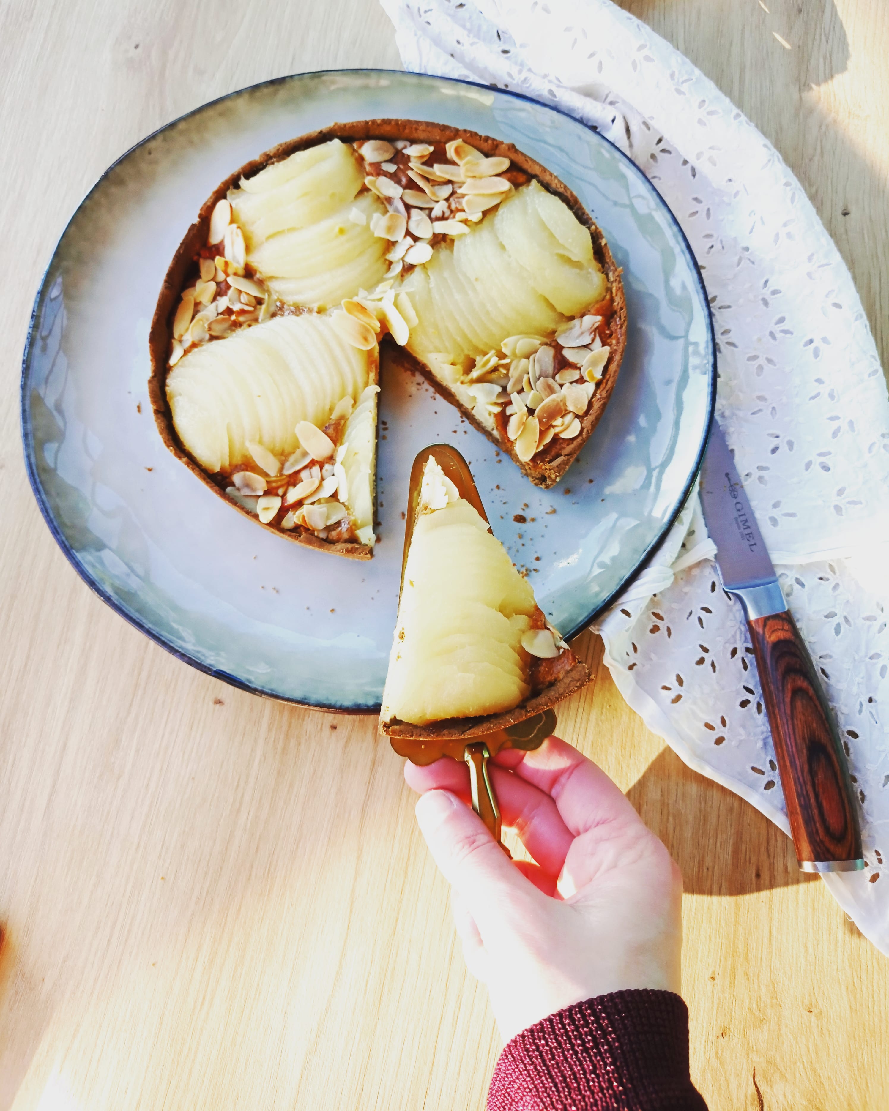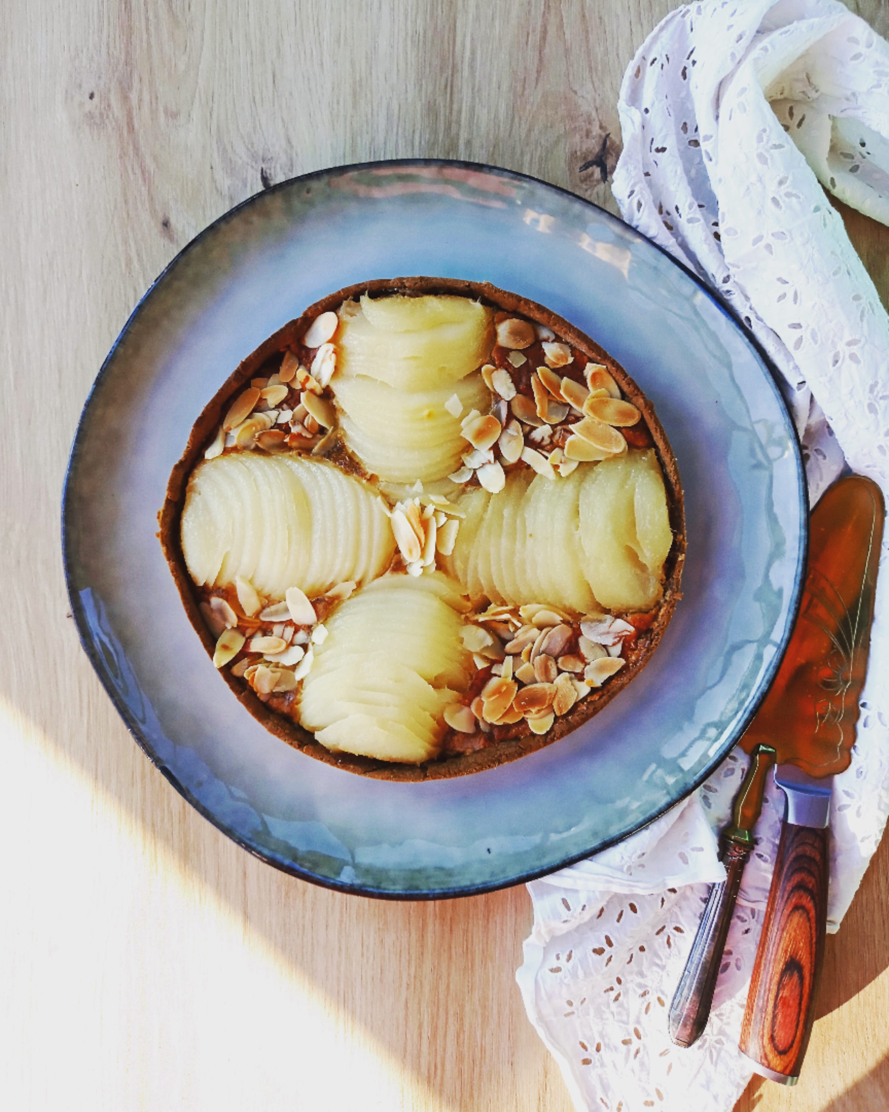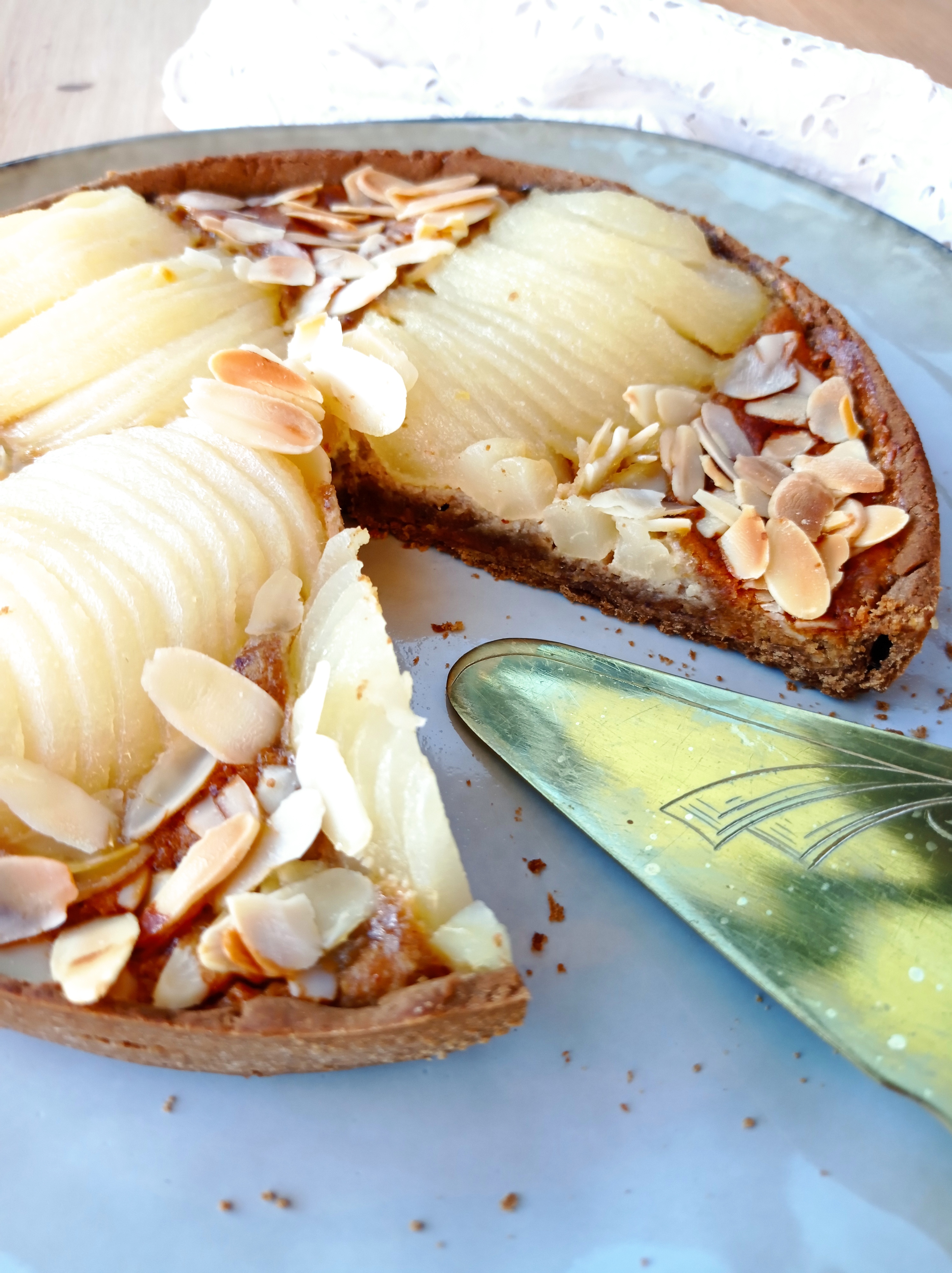 Avant de bientôt passer aux fruits de printemps et d’été, voici la recette de la fameuse tarte Bourdaloue, composée d’une pâte sucrée, de poires au sirop et d’une crème d’amande. Je vous livre ma version sans gluten ni produits laitiers qui est une pure gourmandise. Ma fille particulièrement raffole de ce dessert que j’ai alors réalisé à 2 reprises ces dernières semaines !