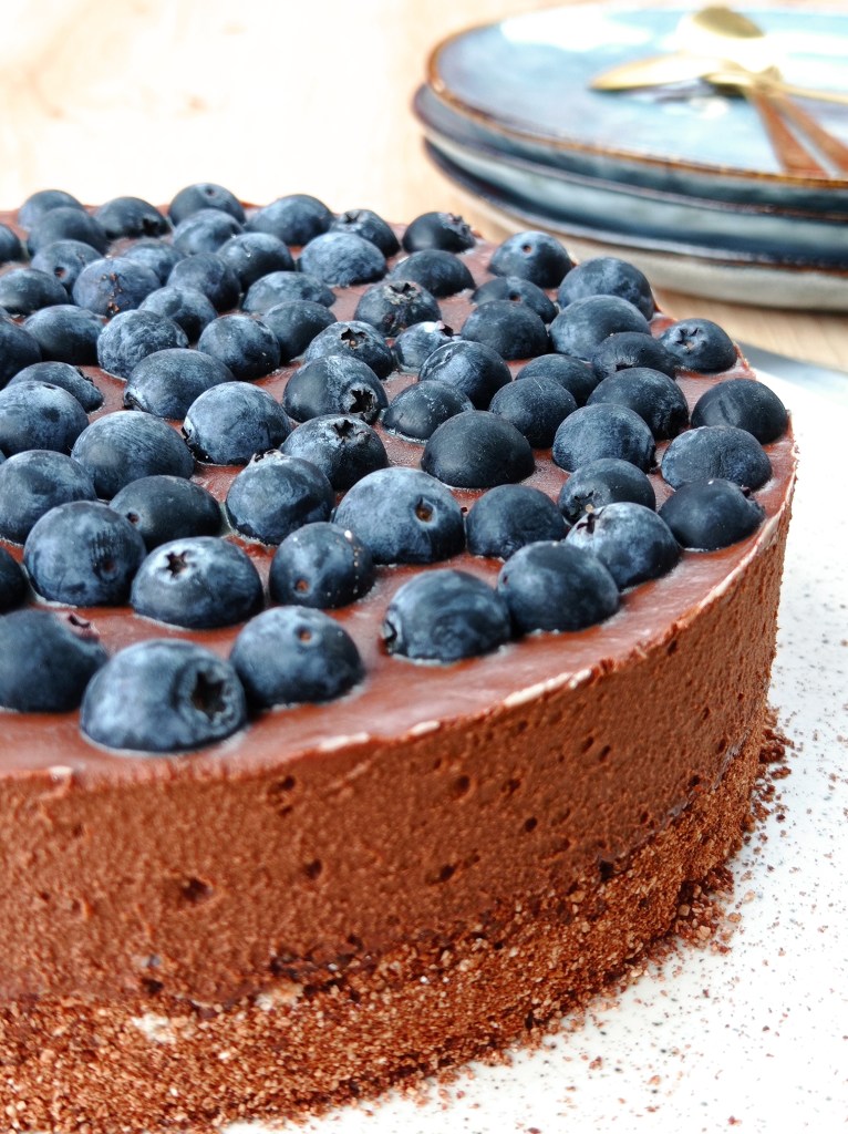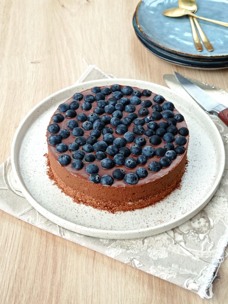 Voici une base de tarte crue au chocolat (ou presque crue, on fait juste chauffer un peu la crème pour la préparation de la ganache) que vous pourrez ensuite agrémenter à votre convenance avec les fruits de votre choix. Au printemps et en été, pensez aux différentes baies, fraises, prunes, abricots, pêches… A l’automne et en hiver, cette tarte accueillera volontiers des kiwis, clémentines, mangues, ananas… Vous pouvez aussi choisir d’y déposer des noisettes ou des noix grossièrement concassées, ou bien encore de déguster cette tarte composée uniquement de sa base crue et de sa ganache, comme une simple tarte au chocolat.