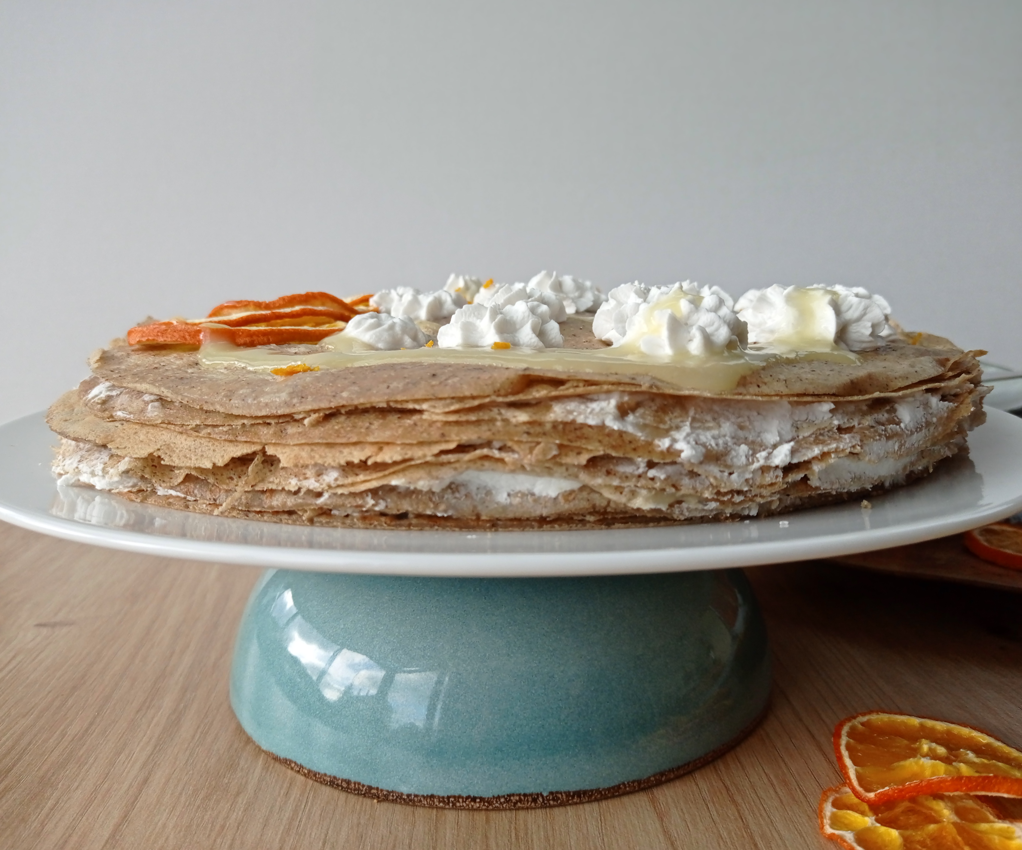 gâteau de crêpes à la fleur d'oranger et au lemon curd