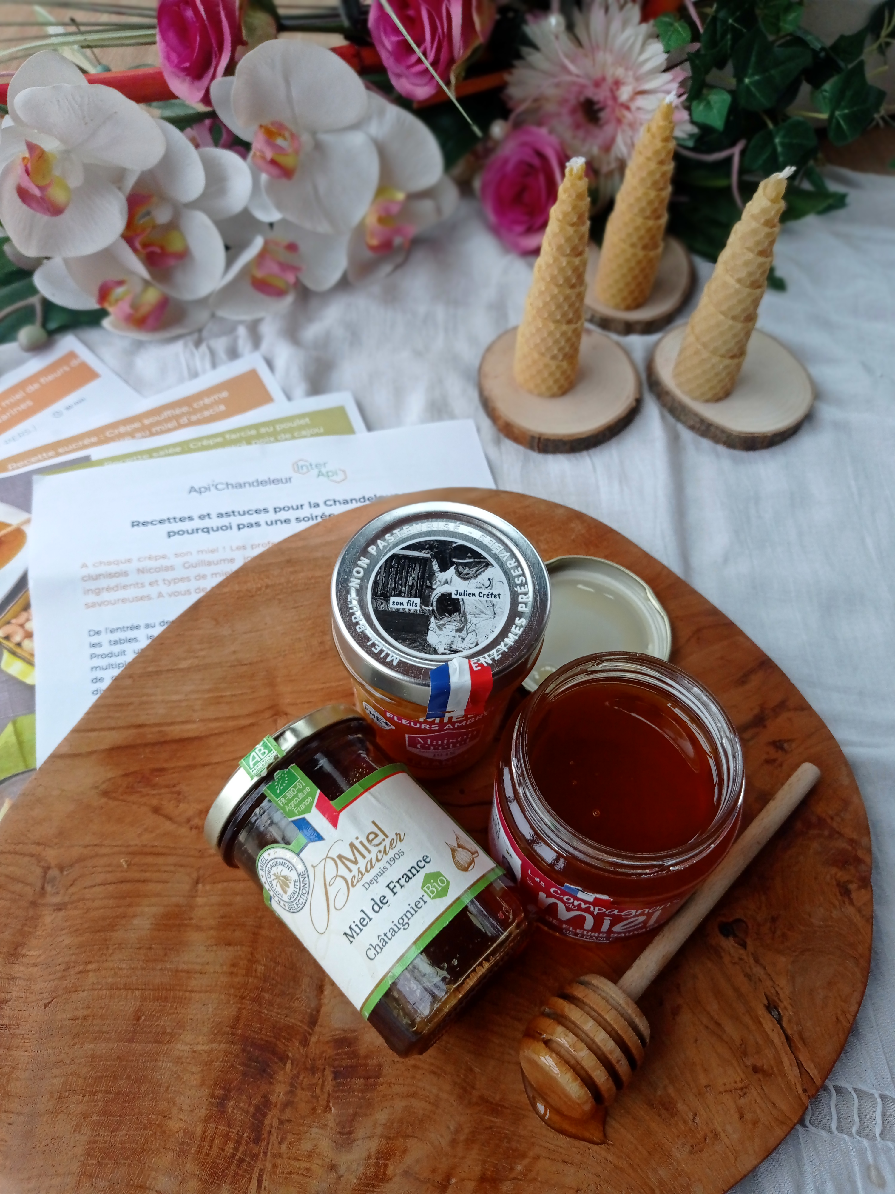 Dans 3 jours, c’est la Chandeleur, l’occasion de partager un repas convivial autour de crêpes salées ou sucrées. Je vous propose 4 associations de saveurs pour mettre en valeur différents types de miel au sein de recettes gourmandes.